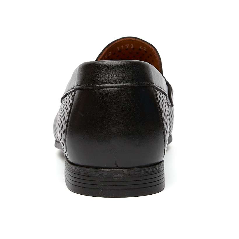 Мужские мокасины с перфорацией. Цвет черный. Мягкая и крепкая турецкая кожа хромового дубления, удобная колодка. Лёгкие - 290 грамм. Для любых стоп, кроме самых узких. Подошва и каблук из современного эластомера не скользят, позволяют хорошо чувствовать педали и амортизируют при ходьбе.