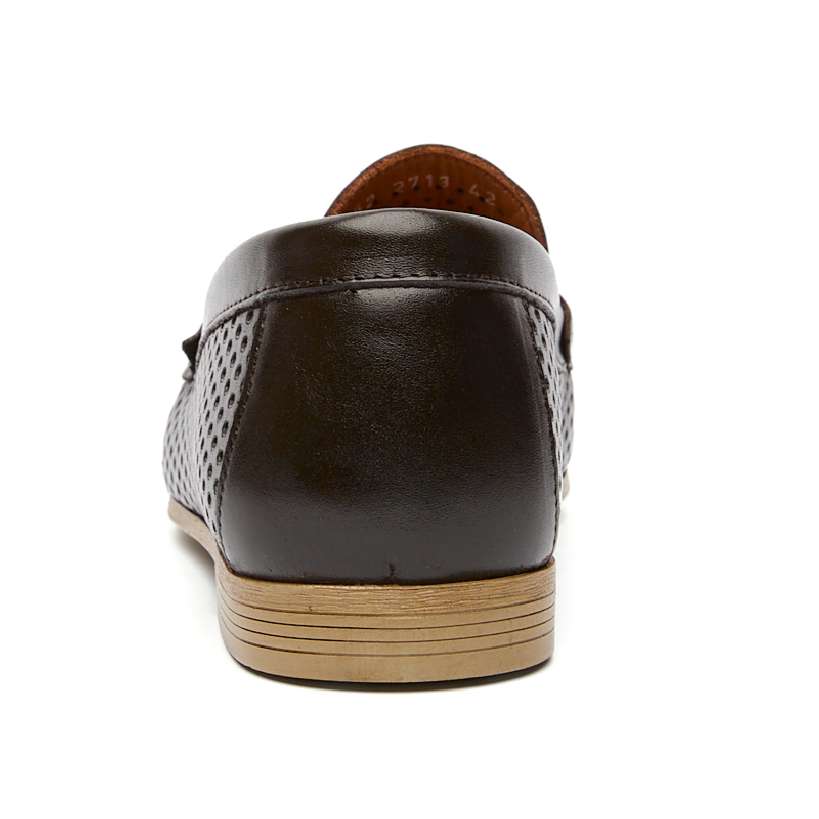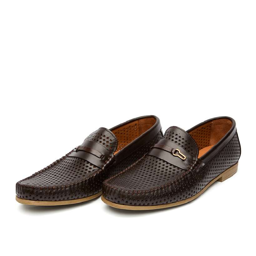 Мужские мокасины с перфорацией. Цвет коричневый. Мягкая и крепкая турецкая кожа хромового дубления, удобная колодка. Лёгкие - 290 грамм. Для любых стоп, кроме самых узких. Подошва и каблук из современного эластомера не скользят, позволяют хорошо чувствовать педали и амортизируют при ходьбе.
