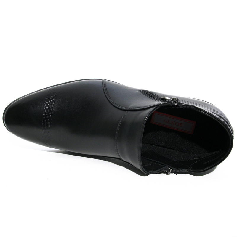 Мужские ботинки Бонти классического стиля с российской спецификой. Удобная модель и внешне выглядит солидно и дорого. Наращенная вверх передняя часть защищает от холода. 2 надёжные молнии - с каждой стороны позволяют легко одевать и снимать ботинки. Подходят на нормальную и широкую ногу. Каблук и подошва из упругой литой резины, амортизирующей удары и не дубеющей на морозе. в наличии коричневый и чёрный цвета, мех и байка.