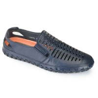 Мужские мокасины - полуботинки из мягкой натуральной кожи на весну и лето. Мягкая и крепкая чёрная глянцевая перфорированная кожа, удобная колодка. Лёгкие - 240 грамм. Для любых стоп, кроме самых узких. Удачное расположение и форма резинок позволяют с комфортом использовать со стопами с практически любым подъёмом. Подошва и каблук из современного эластомера не скользят, позволяют хорошо чувствовать педали и амортизируют при ходьбе.