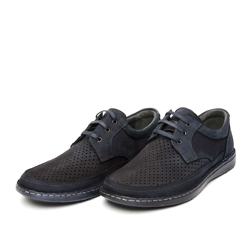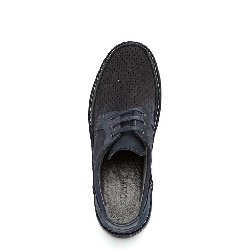 R1030-06 Полуботинки муж.нубук-кожа темно-синий BONTY R1030-06 Турция R1030-06 Мужские синие перфорированные летние туфли на шнуровке из 3-х люверсов, размеры 46-48. Очень удобная колодка. Лёгкие - 330 грамм. Для любых стоп в пределах ортопедической нормы, кроме самых узких и гипершироких. Удачное расположение шнуровки позволяет с комфортом использовать со стопами с любым подъёмом. Толстые и мягкие подошва и каблук из современного эластомера долго не стираются, почти не скользят, позволяют хорошо чувствовать педали и амортизируют при ходьбе. https://www.bonty.ru/r1030-06-polubotinki-muzh-nubuk-kozha-temno-sinij