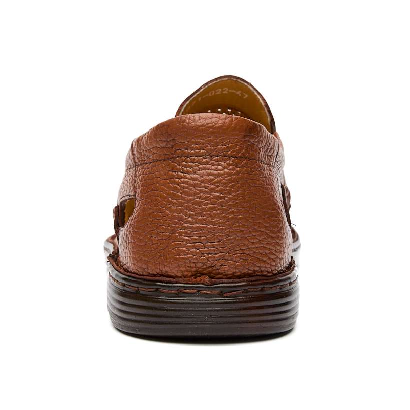 Мужские перфорированные летние туфли, размеры 46-48, коричневые. Очень удобная колодка. Лёгкие - 320 грамм. Для любых стоп в пределах ортопедической нормы, кроме самых узких и гипершироких. Толстые и мягкие подошва и каблук из современного эластомера долго не стираются, почти не скользят, позволяют хорошо чувствовать педали и амортизируют при ходьбе.