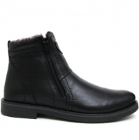 Тёплые и комфортные высокие мужские сапоги чёрные Бонти. Для любых стоп (кроме гипершироких) и любых подъёмов, кроме очень высокого. На сохраняющей тепло упругой и толстой подошве из сополимеров полиуретана. Толстая, мягкая, и прочная натуральная глянцевая кожа. Гипертёплый австралийский натуральный мех на цигейке. Цельнокроеный носок, износоустойчивые незаедающие молнии прикрыты кулисами шириной 10 мм. Подошва гибкая, хорошо изолирует от холода и долго не стирается. Пятка изнутри меховая.