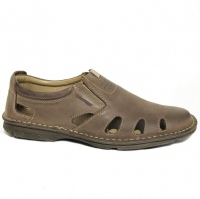 Цельнокроеные летние коричневые мужские туфли из натуральной перфорированной глянцевой кожи премиального качества. Мужские туфли от Bonty на лето и тёплое мжсезонье - грамотная перфорация хорошо охлаждает стопы. Удобная РОССИЙСКАЯ колодка + 4 эргономически правильно расположенных люверса. Мужская обувь размеры от 40 до 45, для любых стоп, кроме супершироких и почти любых подьёмов. Плоская подошва с интегрированным каблуком из современного полиуретанового термоэластопласта очень гибкая, амортизирует при ходьбе и долго не снашивается.