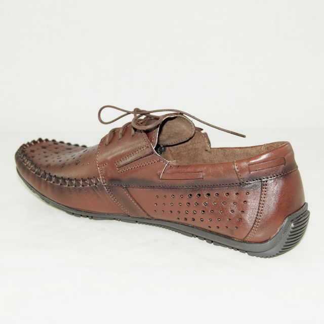 Мужские коричневые туфли - мокасины с аккуратной перфорацией на лето, весну и раннюю осень подойдут под разные стили одежды. Очень мягкая и крепкая кожа, отличная колодка. Лёгкие - 250 грамм. Для любых стоп, кроме самых узких и очень толстых и широких. Подошва из современного эластомера не скользит, позволяет хорошо чувствовать педали и весьма износостойкая.