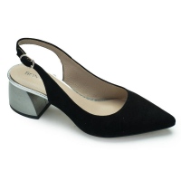 Описание этих завлекательных, устойчивых и выразительных чёрных кожаных дамских туфель на высоком полуклиновидном каблуке высотой 9 см находится в процессе проверки оформления.